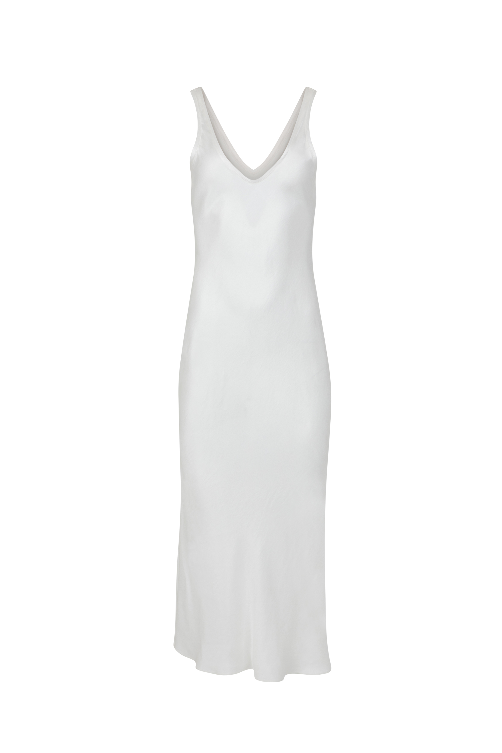 Sensual and ethereal – a dress that combines elegance with boldness. Long and subtly flowing over the silhouette thanks to its draping fabric, it highlights feminine curves with its tailored waist and deep neckline. The thoughtful construction allows for discreet bra wear, ensuring both comfort and elegance. Available in two colour options – black and pure white.