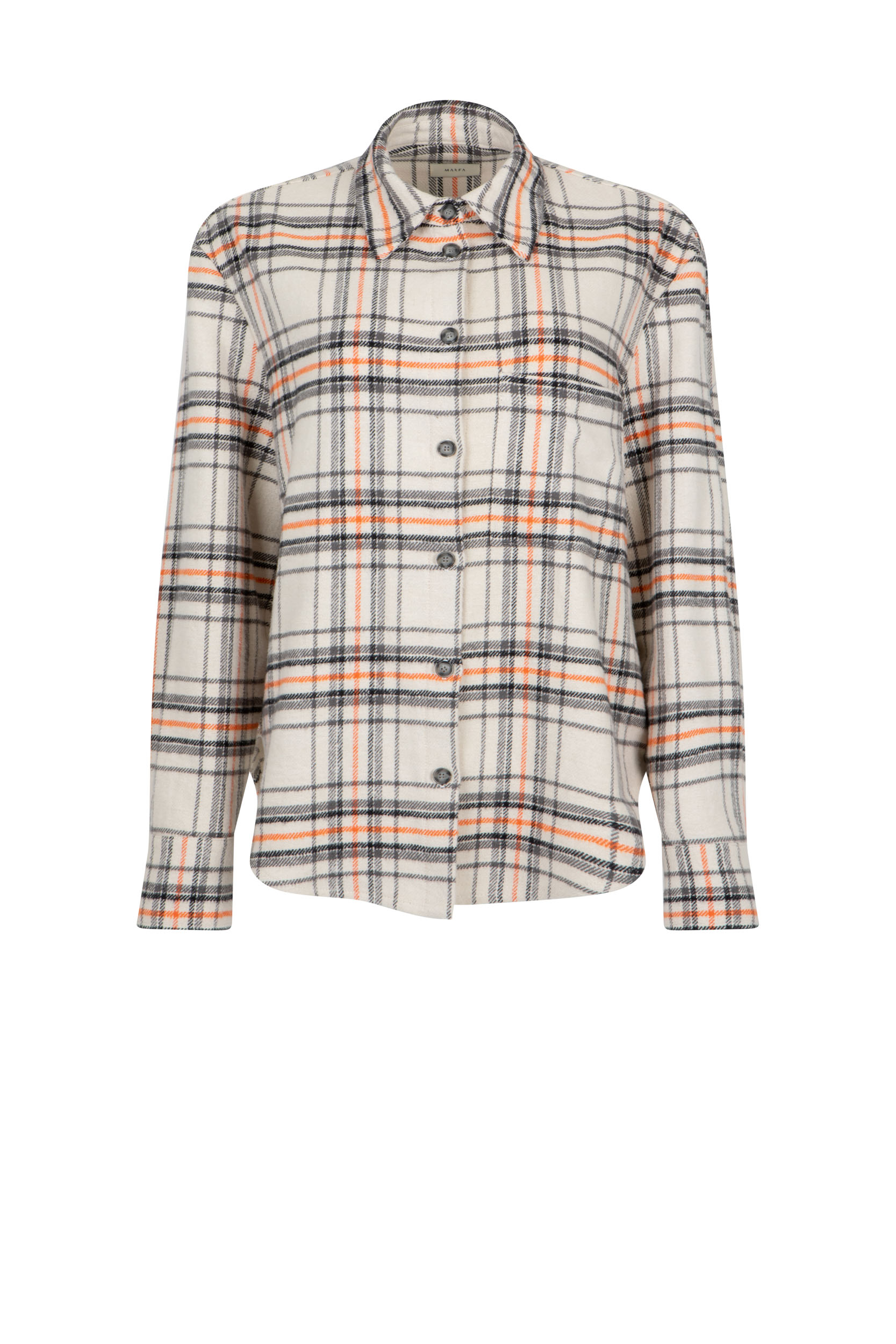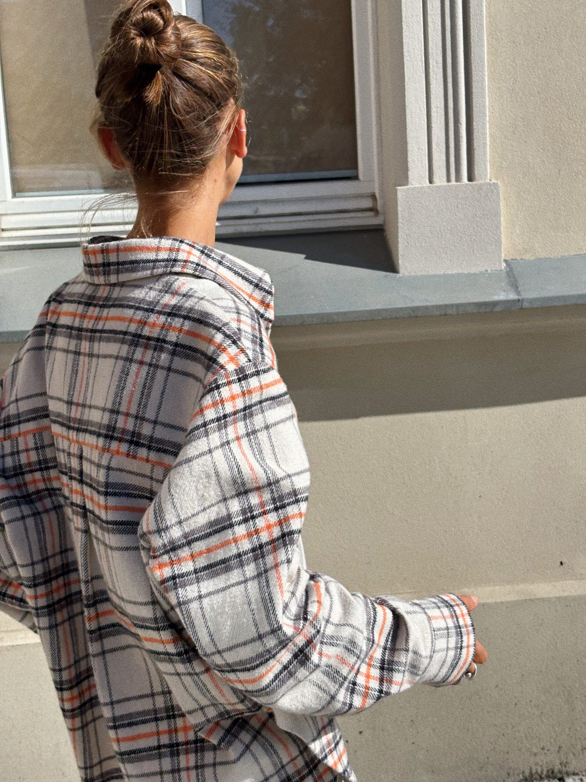 Koszula uszyta z grubszej bawełnianej przędzy o gramaturze 260 g/m, gwarantującej wygodę i trwałość. Model z kołnierzem i klasycznym zapięciem na guziki, świetnie sprawdzi się w casualowych stylizacjach. Połączenie jasnego, kremowego odcienia z pomarańczowo-szarym akcentem subtelnie przełamuje luźny charakter koszuli, dodając całości odrobinę elegancji.