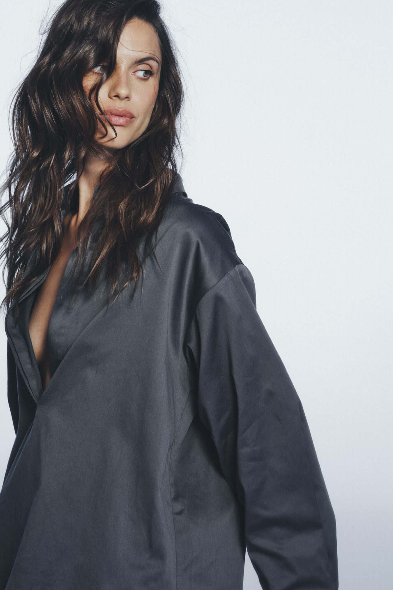 Mikah to nowa definicja klasyki. Prosta, minimalistyczna, wykonana z miękkiej bawełny. Łączy w sobie elementy męskiego kroju ze zmysłowym kobiecym akcentem. Sprawia wrażenie zapinanej na guziki, jednak posiada charakterystyczny dekolt w serek, który nadaje całej formie nowoczesnej lekkości. To wyjątkowa propozycja dla kobiet, które cenią sobie klasykę, ale w nowoczesnym, nieoczywistym wydaniu. Idealna do stylizacji casualowych, jak i eleganckich zestawów typu office.