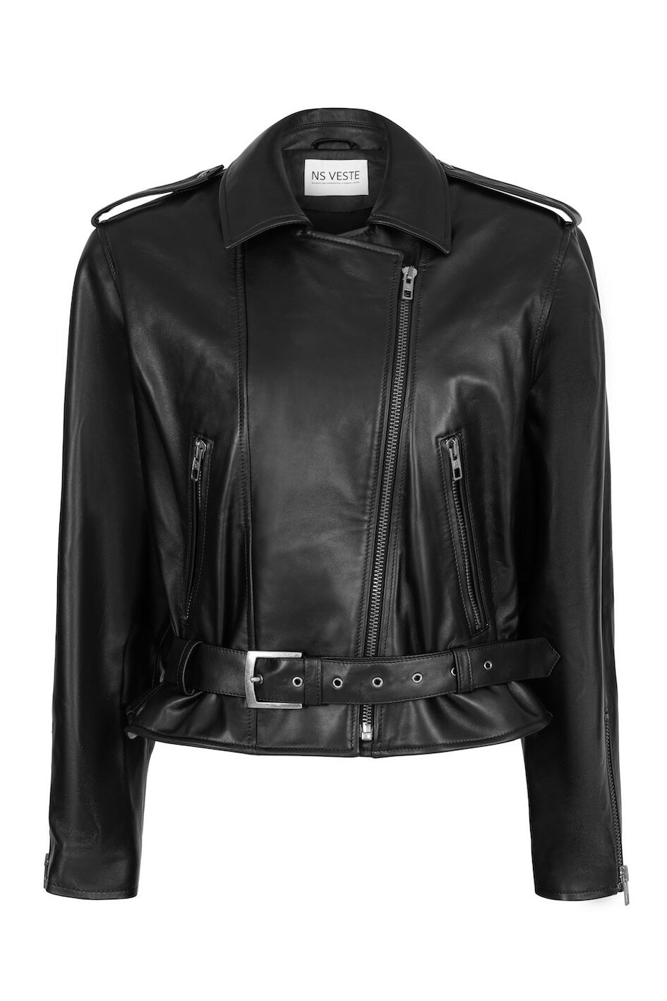 LIBERTÉ retro waisted biker jacket in black to reinterpretacja klasycznej ramoneski w luksusowym wydaniu. Jej taliowany krój podkreśla sylwetkę, nadając jej wyrazistości i elegancji, a mocna linia ramion i charakterystyczne bikerskie detale – przesunięty suwak, pagony na ramionach, pasek w talii oraz metalowe wykończenia – wprowadzają odważny, rockowy akcent.