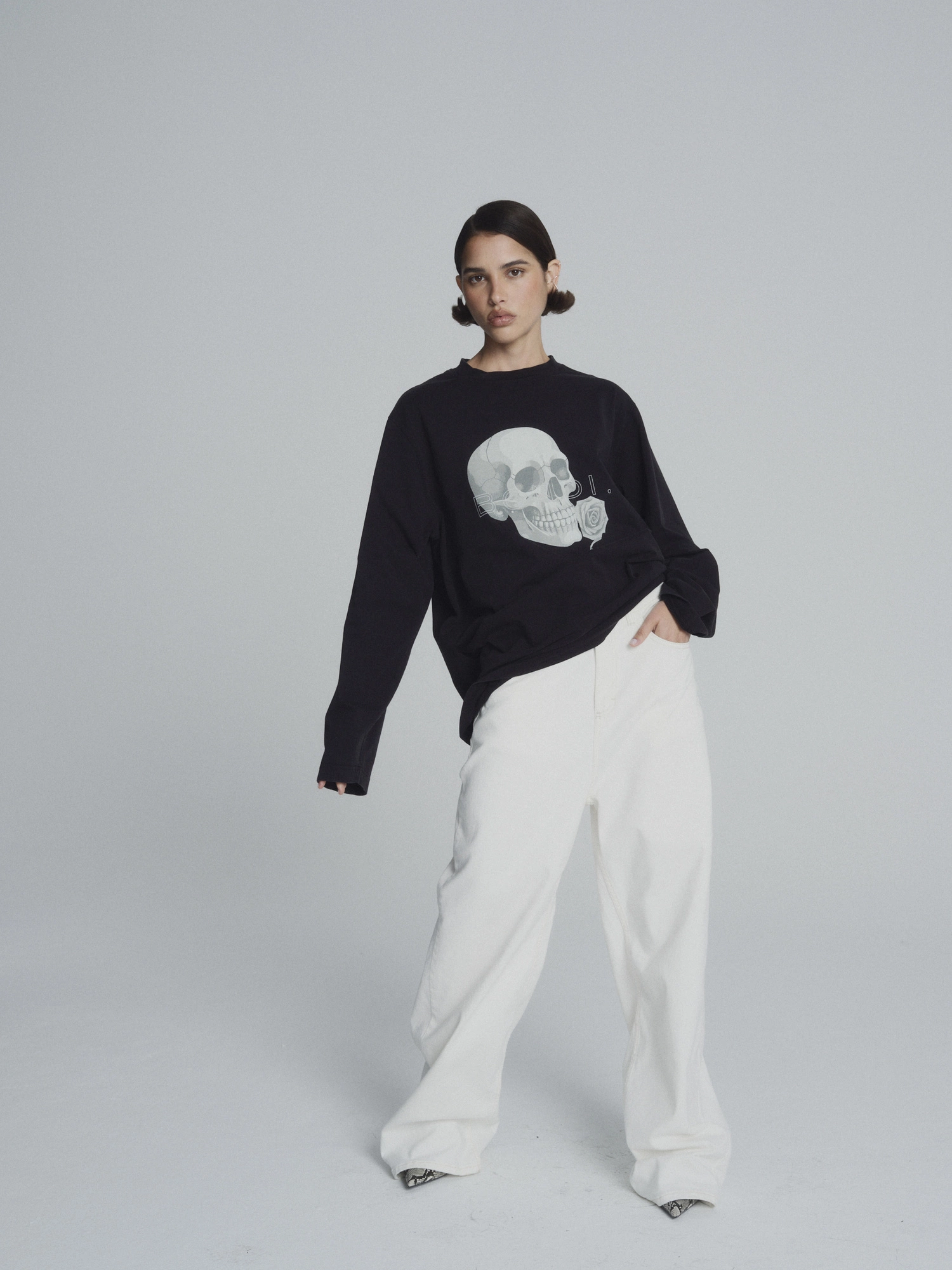 Centralnym punktem projektu jest grafika z motywem czaszki i róży, która przełamuje minimalistyczną formę i dodaje całości wyrazistego, buntowniczego tonu.