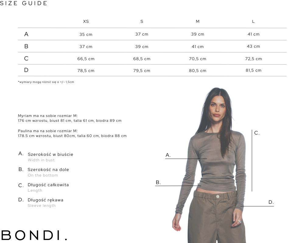 Dopasowana koszulka z długim rękawem, wykonana z lekkiej mieszanki wiskozy i bawełny z dodatkiem elastanu. Minimalistyczny fason nadaje jej nowoczesny charakter, a delikatnie transparentna tkanina dodaje odważnego, ale jednocześnie subtelnego wyrazu. Idealna do noszenia solo z gładką bielizną lub jako baza do warstwowych stylizacji – pod oversize’ową marynarkę, skórzaną kurtkę czy casualową koszulę.
