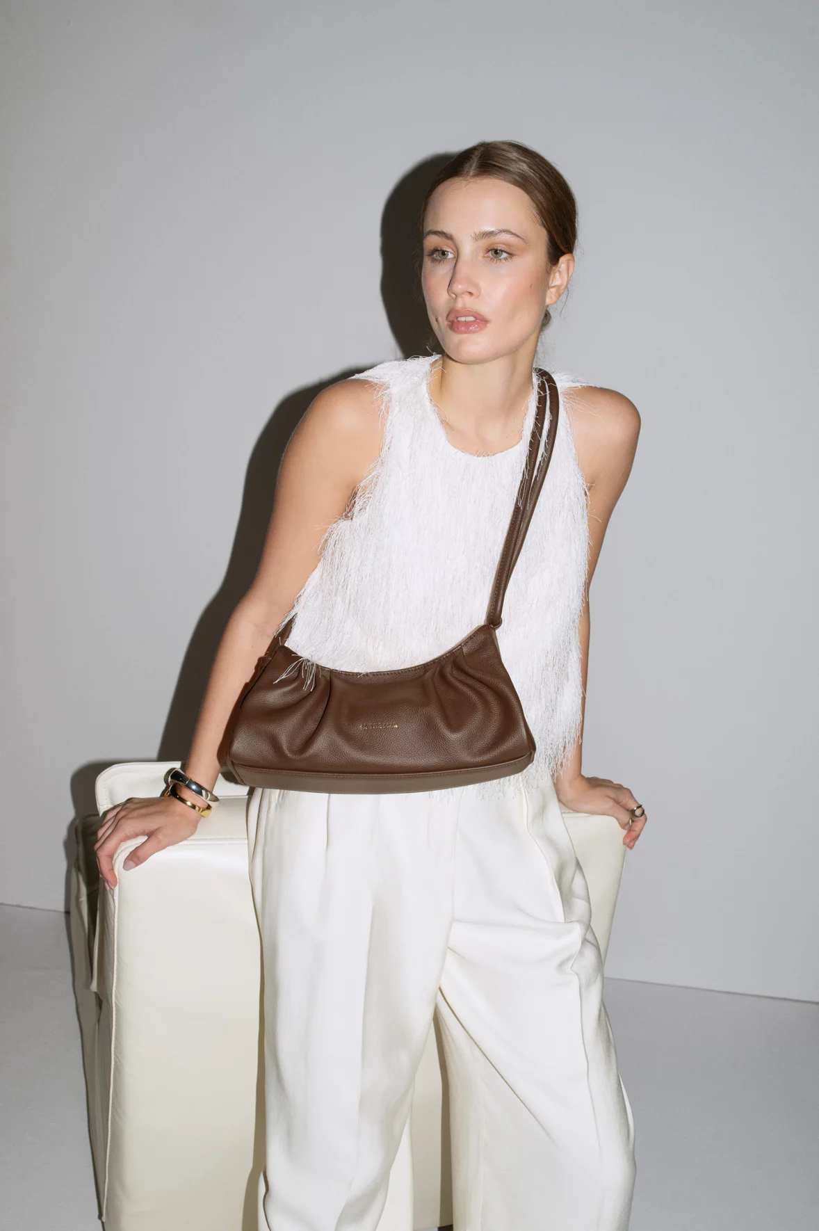 Ta torebka jest wykonana z najwyższej jakości 100% włoskiej skóry o kontrolowanym śladzie węglowym, odznaczonej najważniejszym ekologicznym certyfikatem der Blauer Engel. Skórę wyprodukowała ekogarbarnia oszczędzająca wodę i używająca energii z odnawialnych źródeł, przetwarzająca wyłącznie skóry stanowiące odpady z europejskiego przemysłu spożywczego. Jej podszewka to wyjątkowa tkanina składająca się z najwyższej jakości bawełny z certyfikatem OEKO-TEX oraz w 65% z recyklingowanych butelek PET. Torebka została uszyta ręcznie w Polsce, w rodzinnym zakładzie kaletniczym.