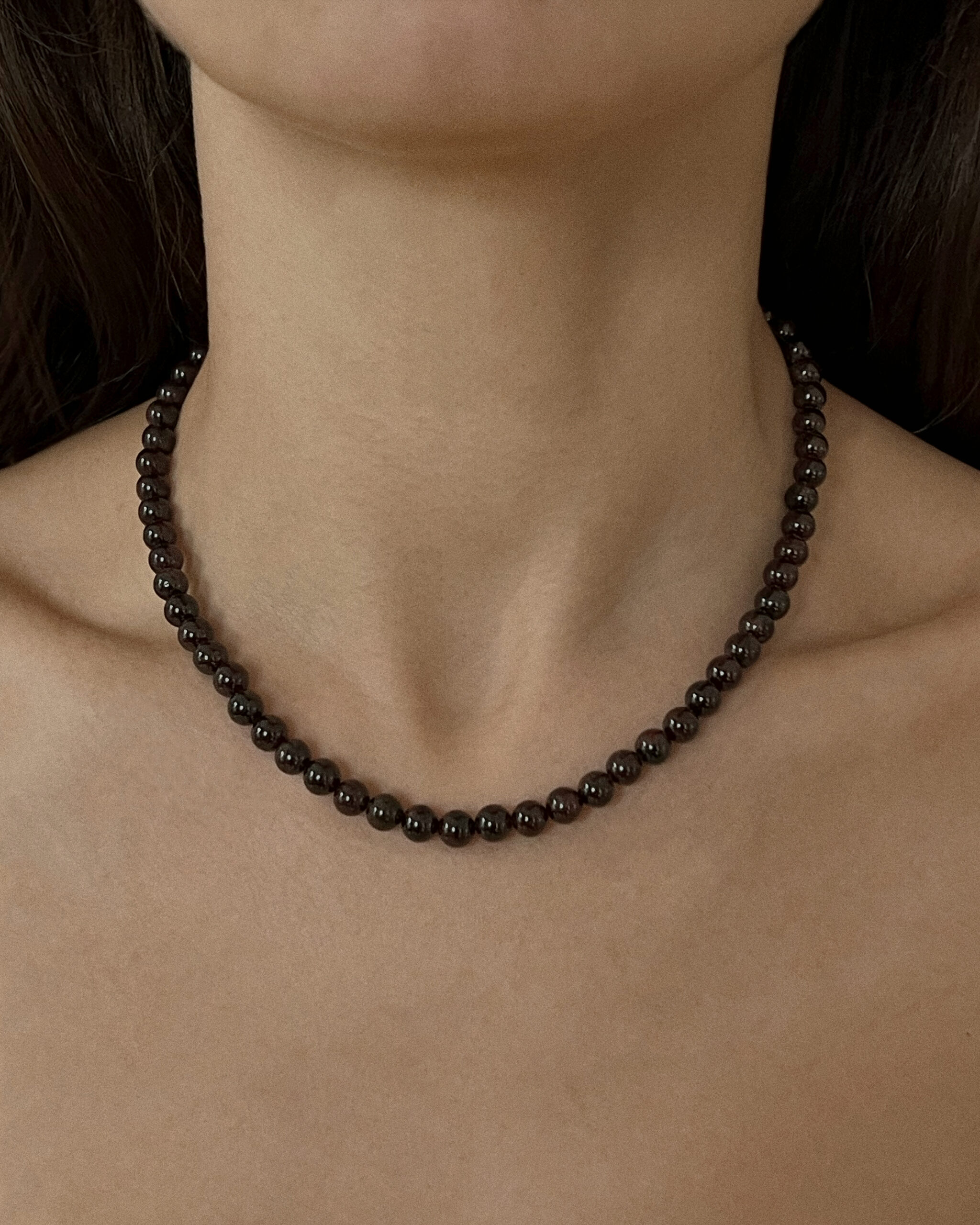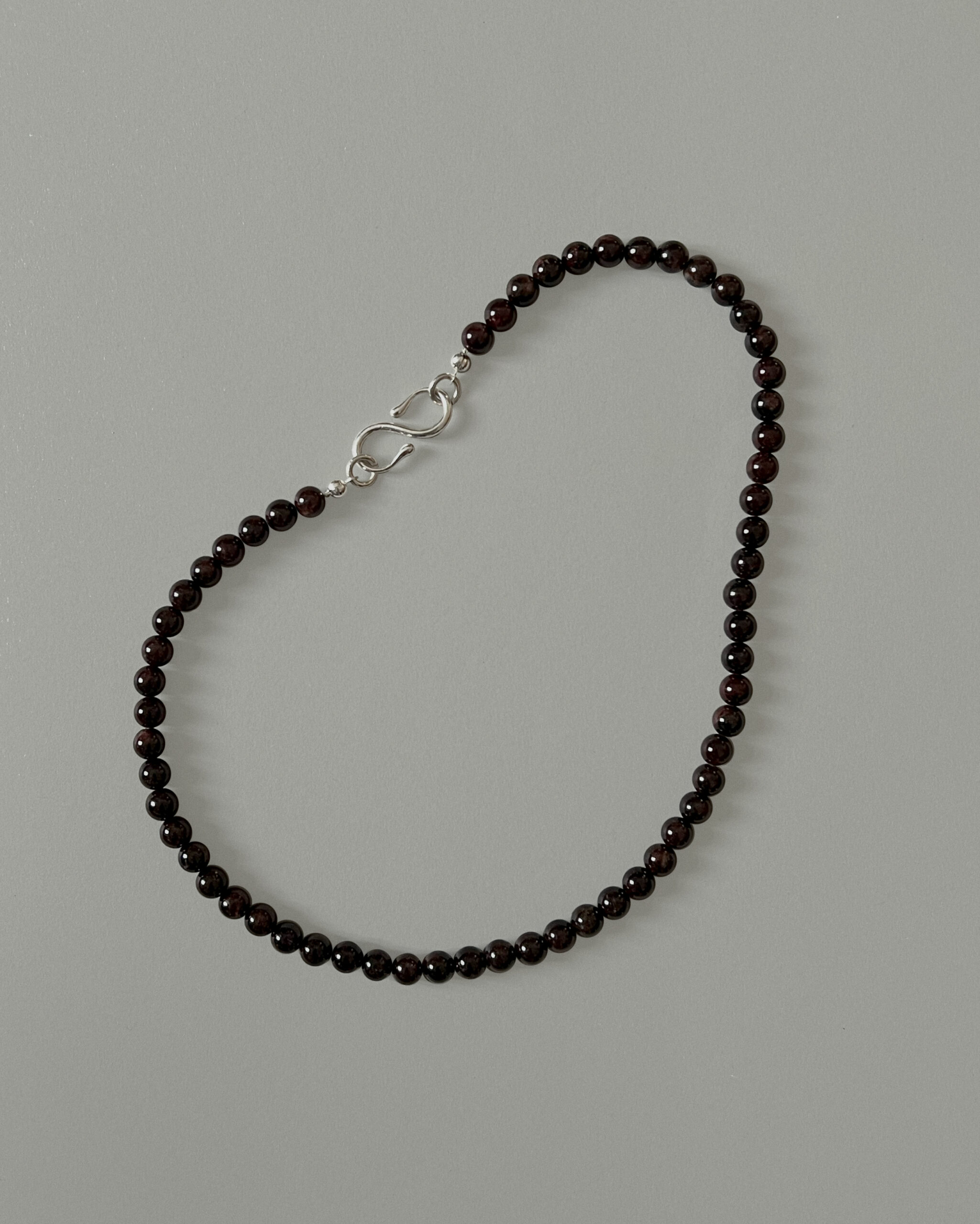 Naszyjnik, którego główny element stanowi niezwykły naturalny kamień szlachetny – granat – zakończony jest autorskim zapięciem, które zapewnia wygodę użytkowania. Jego plastyczne końce zapięcia można delikatnie doginać, dzięki czemu samodzielne zapinanie naszyjnika jest niezwykle proste. Zapięcie wykonane są ze srebra próby 925. Łączna długość to 41 cm. Ze względu na naturalny charakter kamieni, naszyjniki mogą nieznacznie różnić się od siebie, długość całkowita może wahać się o +/- 5 mm.