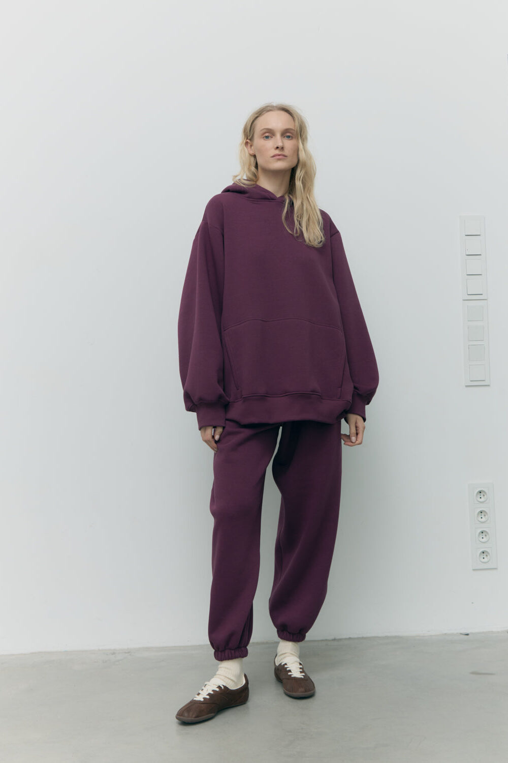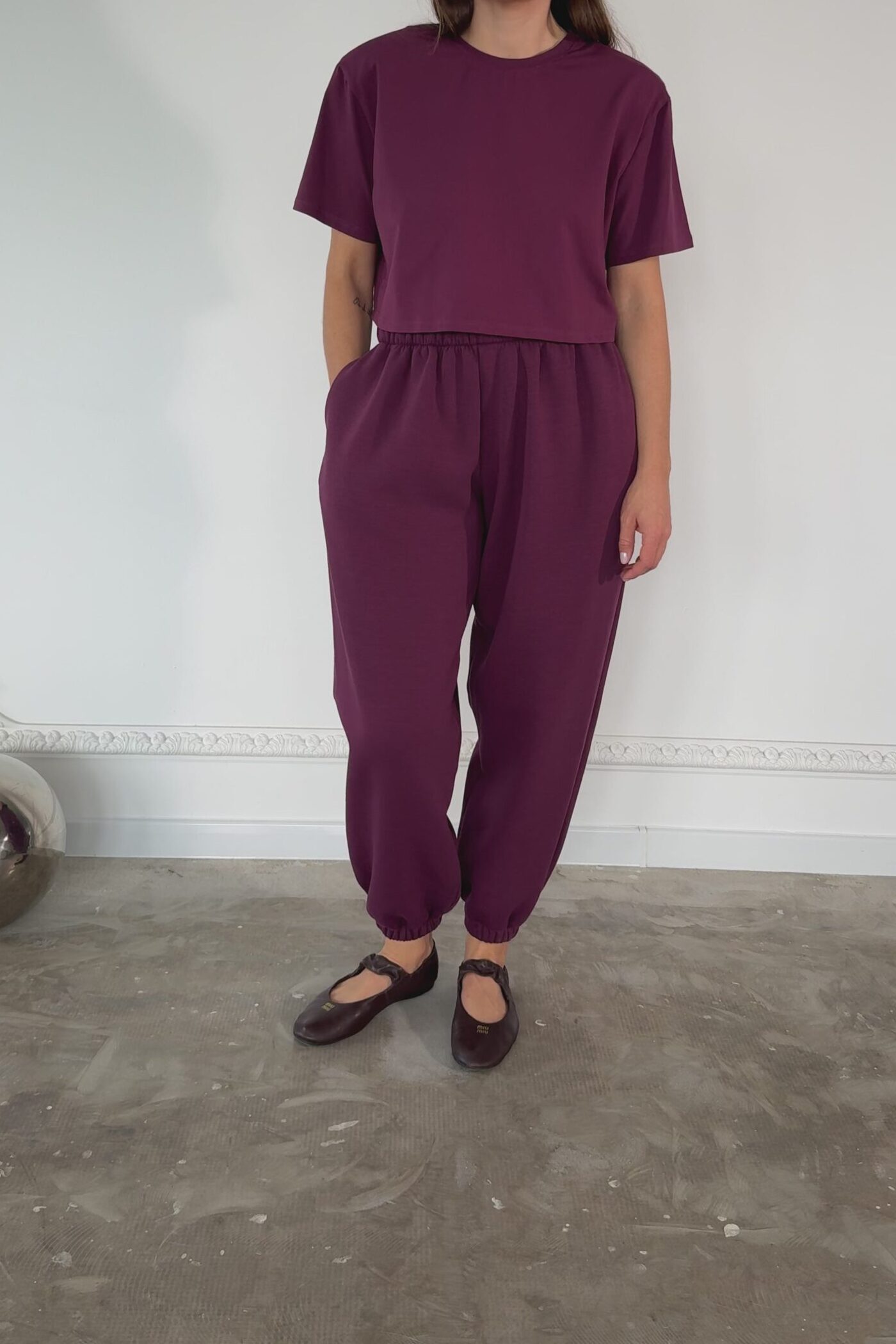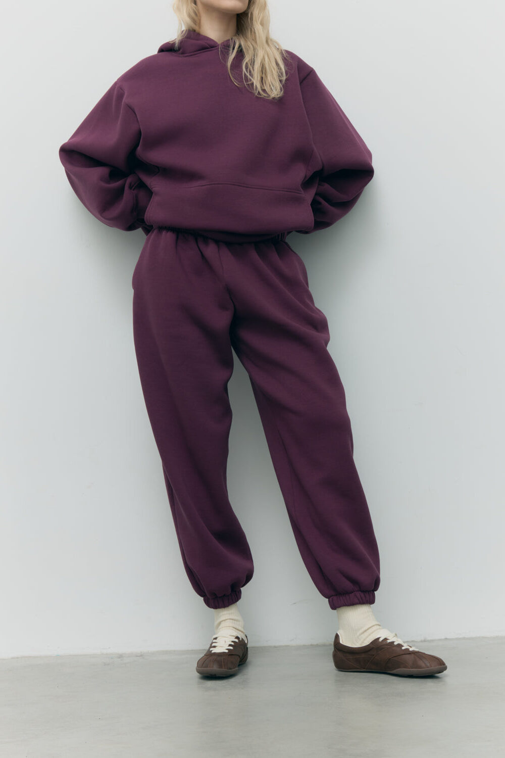 Kolor Mauve Wine – głęboki, winny burgund – sprawia, że spodnie wyróżniają się elegancją i wyrazistością, jednocześnie pozostając niezwykle uniwersalne w stylizacjach.