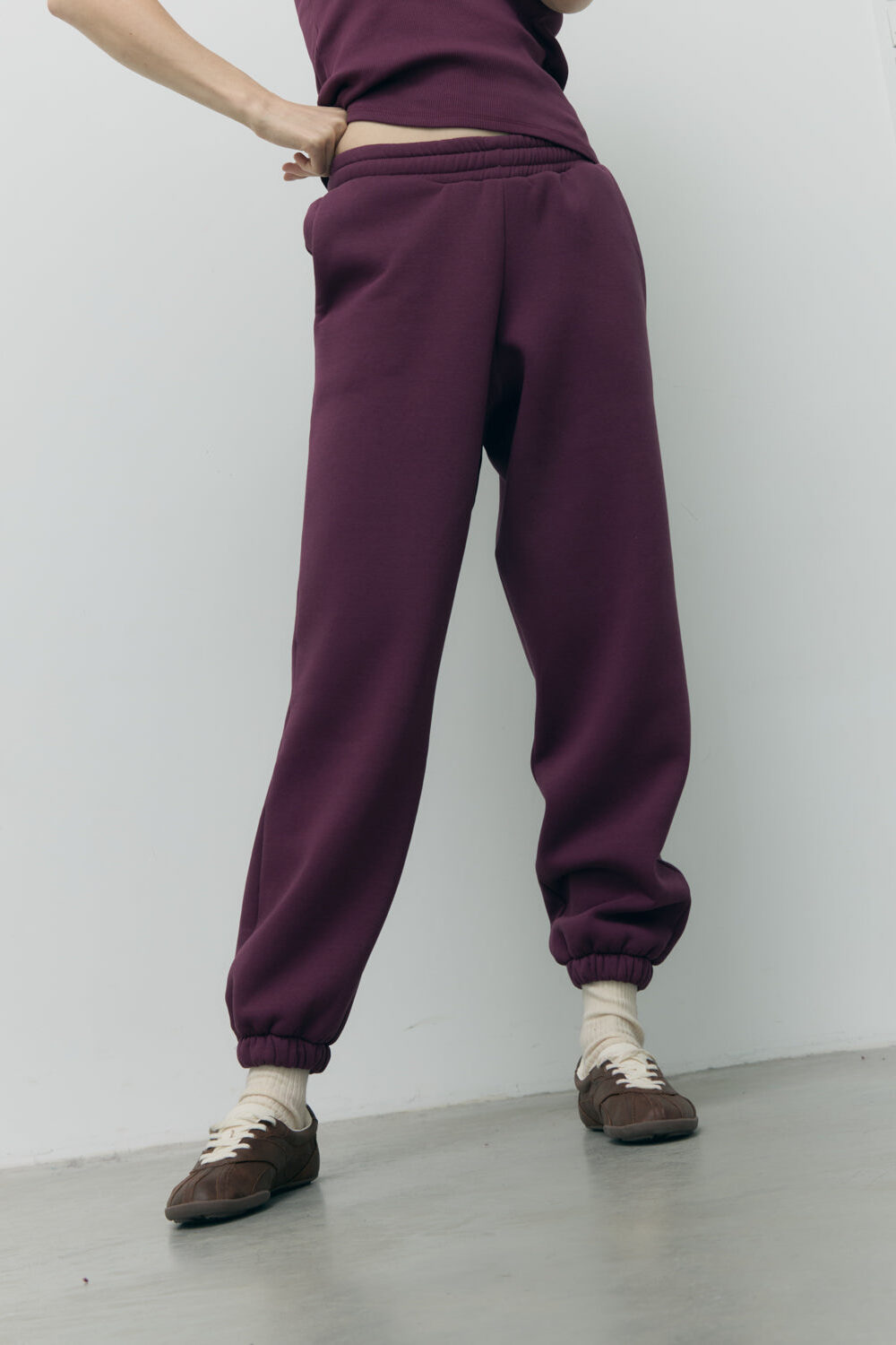 Głęboki, winny odcień Mauve Wine nadaje im elegancji i sprawia, że świetnie odnajdą się nie tylko w sportowych zestawach, ale także w casualowych, stylowych stylizacjach. Elastyczny pas i ściągacze przy nogawkach gwarantują wygodne dopasowanie, a minimalistyczny design sprawia, że łatwo połączysz je z innymi elementami kapsułowej garderoby.