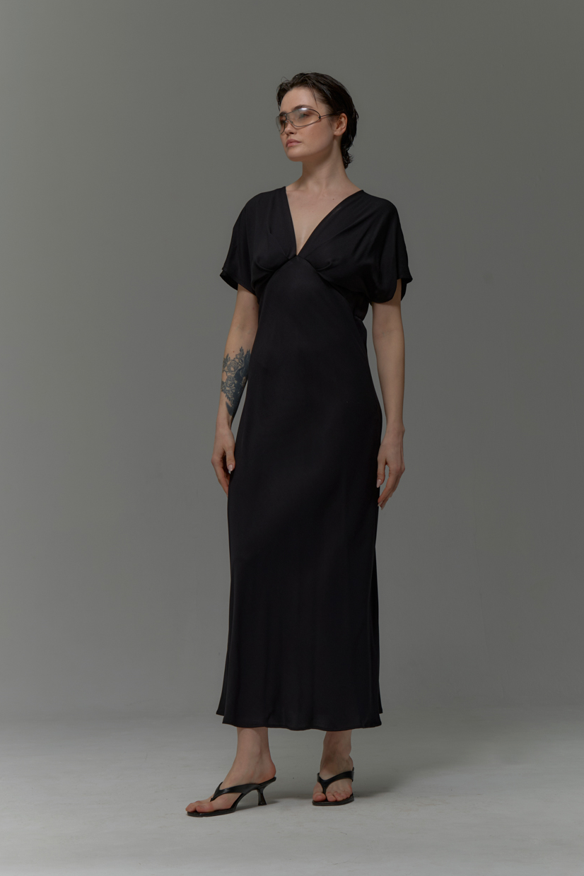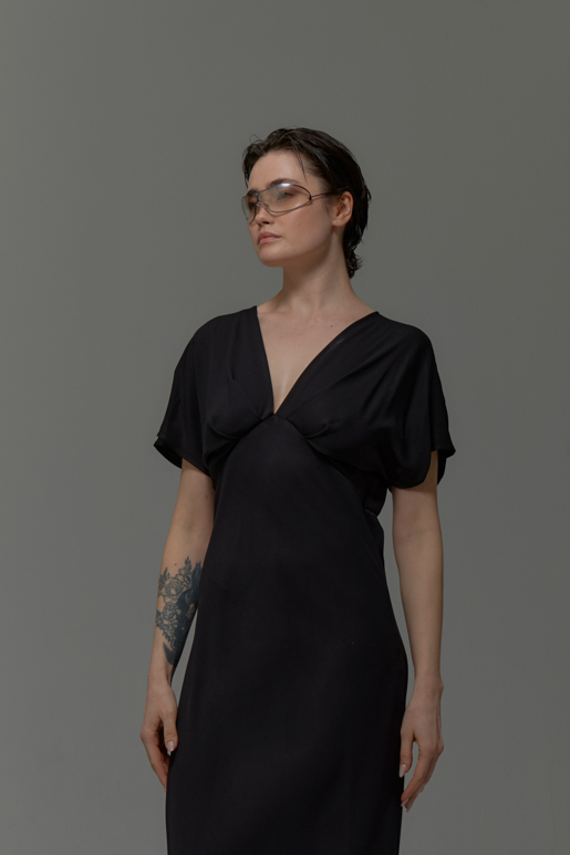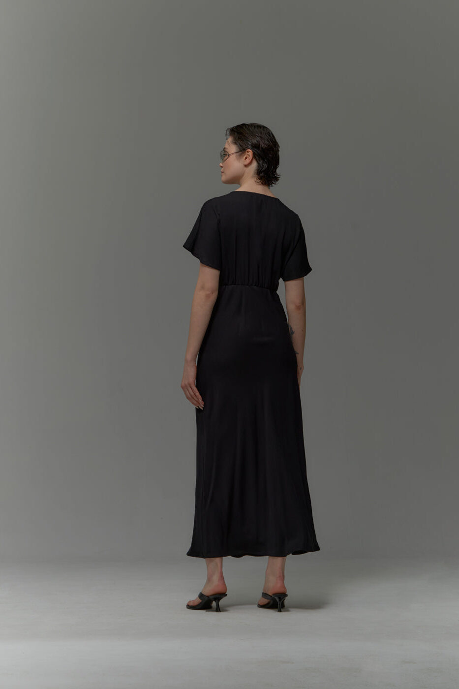 Sukienka Eteral w pastelowym odcieniu odnajdzie się w każdej szafie. Ta satynowa sukienka wyróżnia się elegancją i nowoczesnym krojem. Drapowana góra z dekoltem “V” subtelnie eksponuje szyję i obojczyki, a luźne rękawy dodają lekkości. Skrojony ze skosu dół, pięknie podkreśla sylwetkę. Kryty zamek na boku gwarantuje perfekcyjne dopasowanie. To idealna propozycja na wyjątkowe okazje – od koktajlowych spotkań po wieczorne przyjęcia.