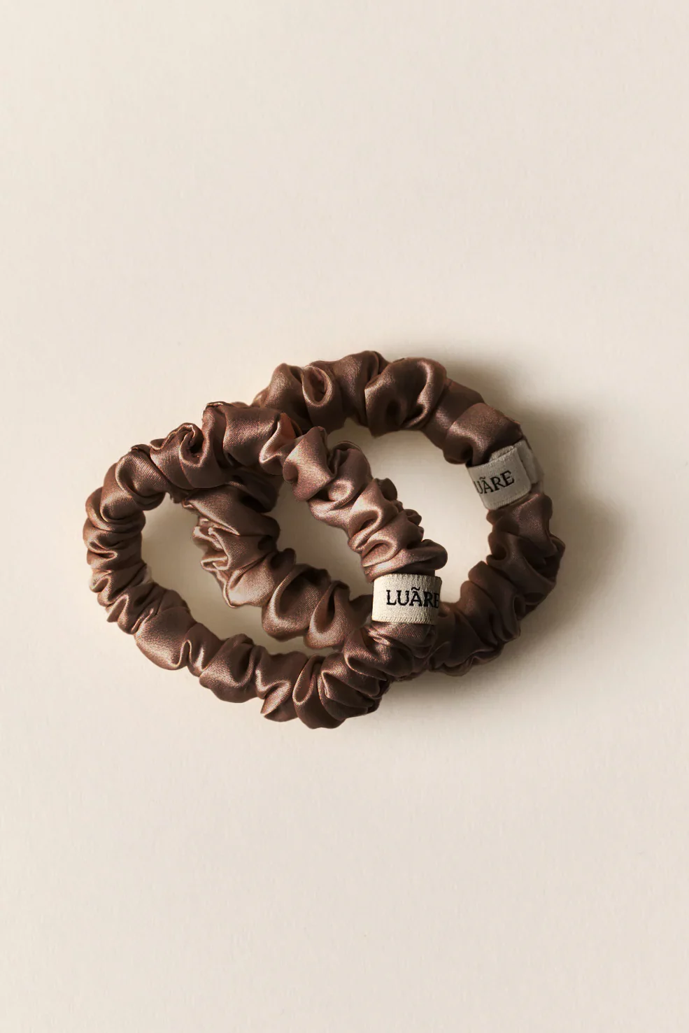 Zestaw dwóch jedwabnych scrunchies w rozmiarze, który zawsze warto mieć pod ręką. Wykonane z najwyższej jakości włoskiego jedwabiu, pomagają utrzymać włosy w idealnej kondycji, minimalizując zagniecenia i łamanie.