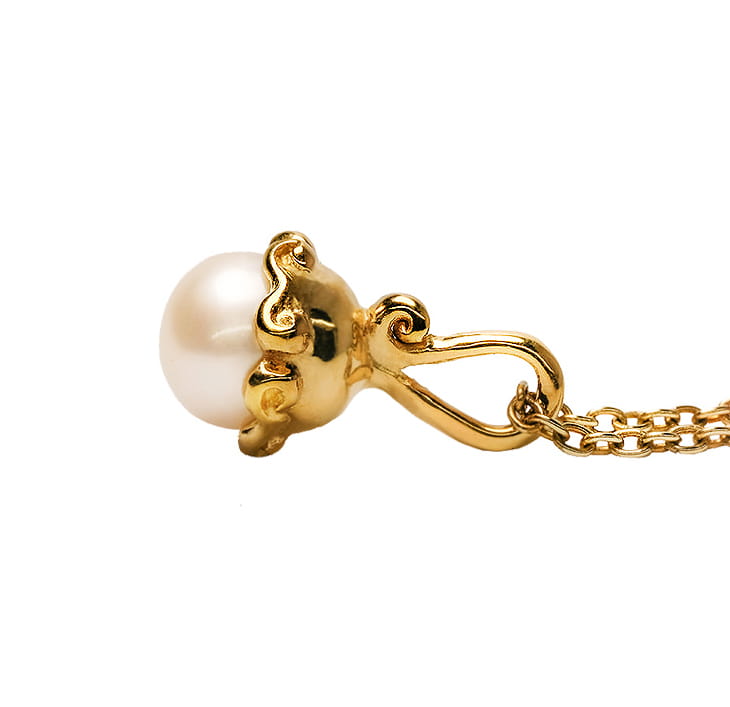 Wykonana ze srebra złoconego 24k złotem, zdobiona rzeczną perłą hodowlaną.